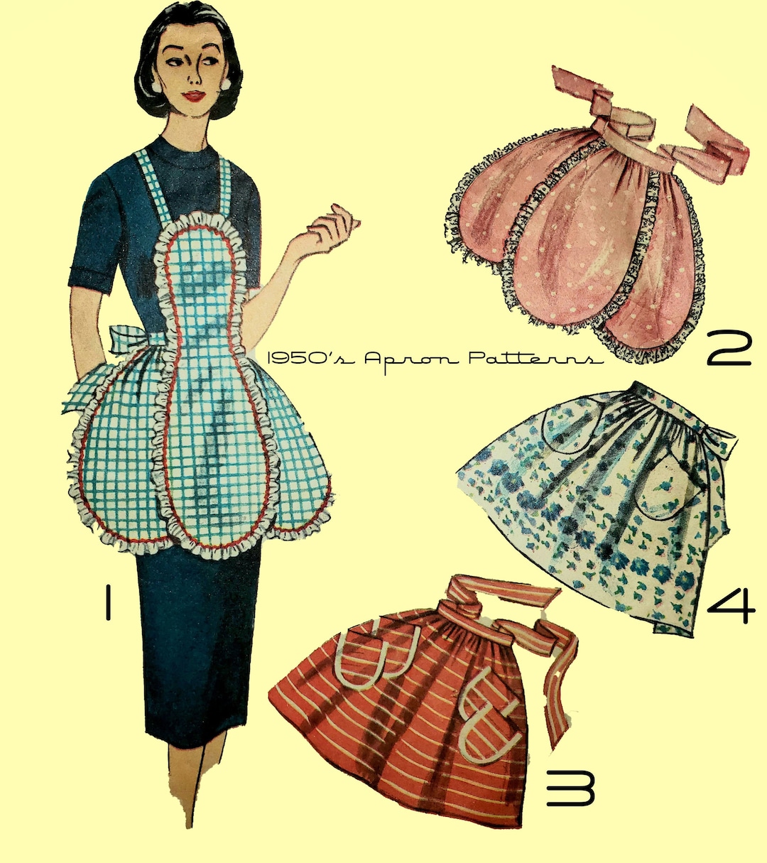 1950s Misses One Yard Apron Patterns 4 Views Instant Digital Etsy