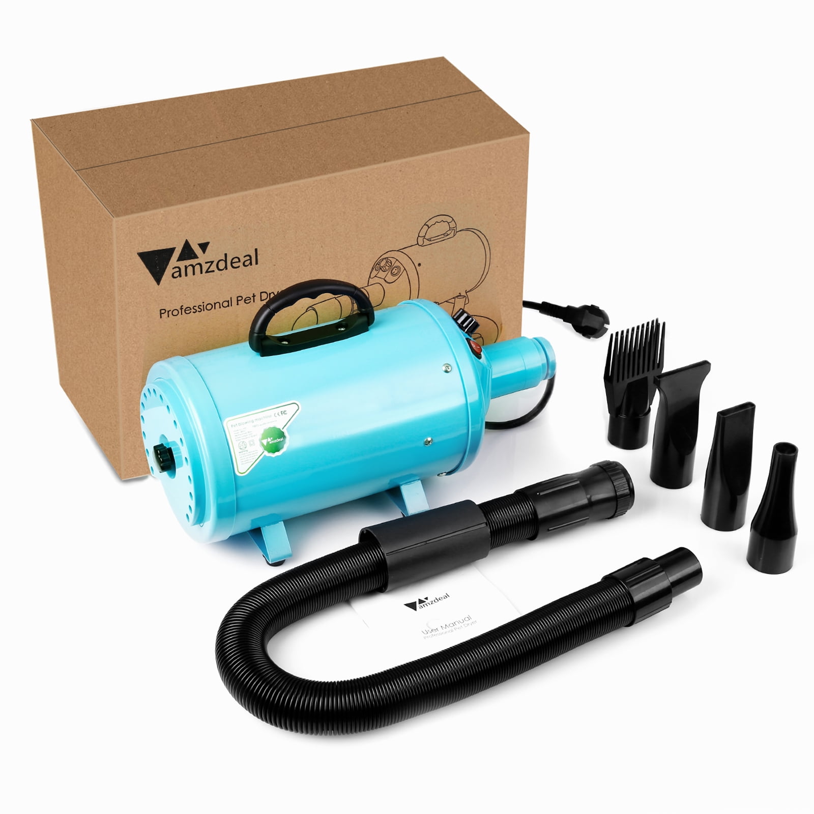 Amazon Com Winnie Home Dog Hair Dryer 3 2hp Stepless Adjustable Speed Pet Grooming Dryer High Velocity Dryer For Dogs With 4 Different Nozzles Bright Black Pet Supplies